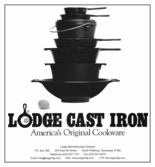 Englishman Joseph Lodge first settled in the town of South Pittsburgh, Tennessee in 1896 where he opened his foundry. Early pots and kettles were made by pouring molten iron into a sand mold. Today the foundry continues to create cookware using a secret metal formula, upholding a standard for cookware not found anywhere else. Their skillets, Dutch ovens, kettles, grill pans, and griddles are sold and used all over the world. This versatile cookware can be used over campfires, on stove-tops, and in ovens. “The Lodge Made Right” (TM) is a trademarked message for the most popular cookware.