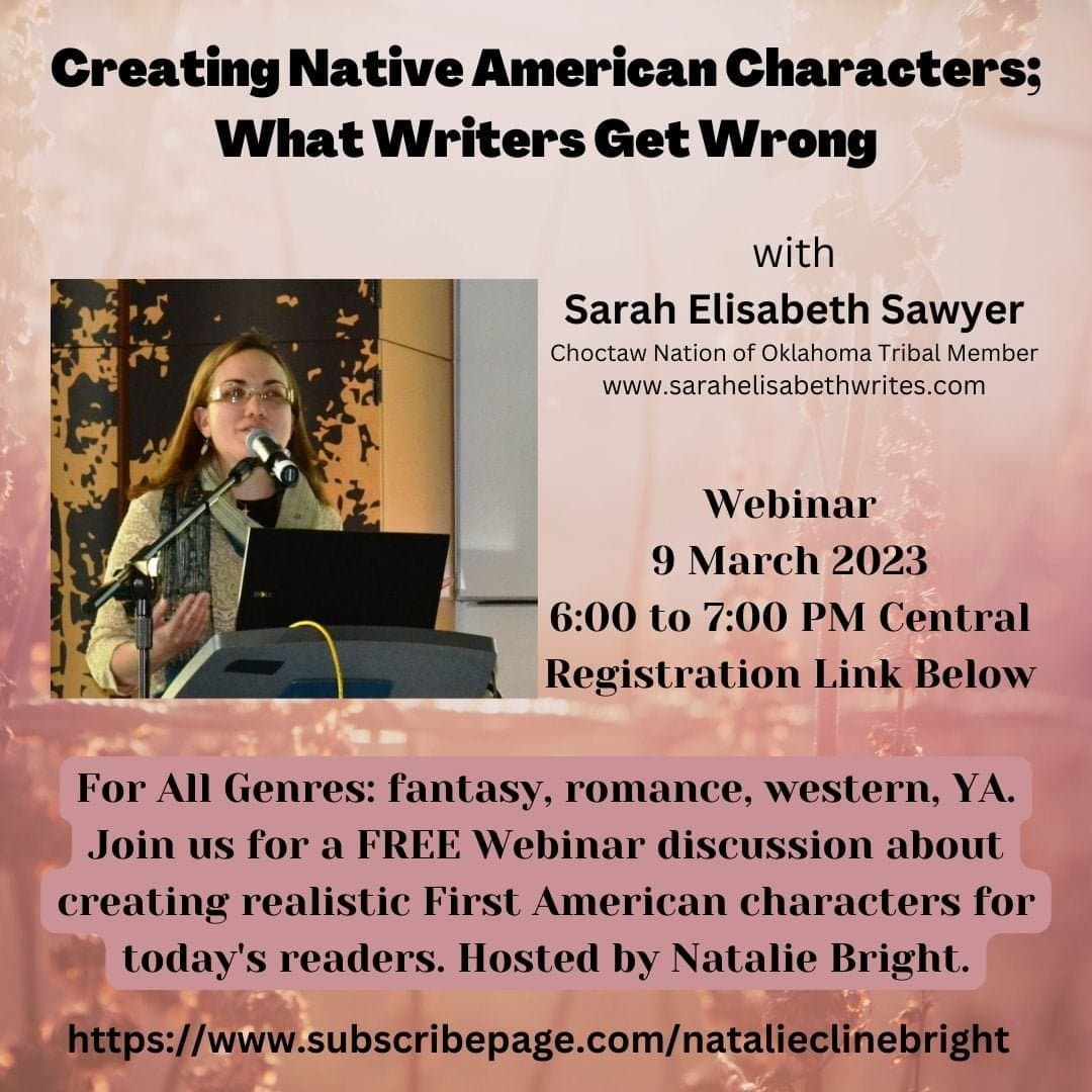 Over the course of crafting this novel, I stumbled on an online course by Choctaw author and storyteller Sarah Elisabeth Sawyer. The information has proven to be invaulable, and when Sarah offered me the chance to collaborate on a free webinar I was thrilled.